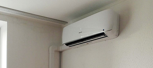 Кондиционер установлен в 1 этап, на готовый ремонт. Фреоновый трубопровод проходит внутри помещения, закрыт декоративным кабель-каналом. Наружный блок установлен под открывающейся створкой окна.
