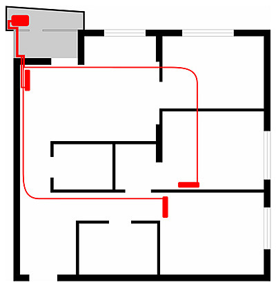План раскладки фреоновой трассы и размещения наружного и внутреннего блоков: