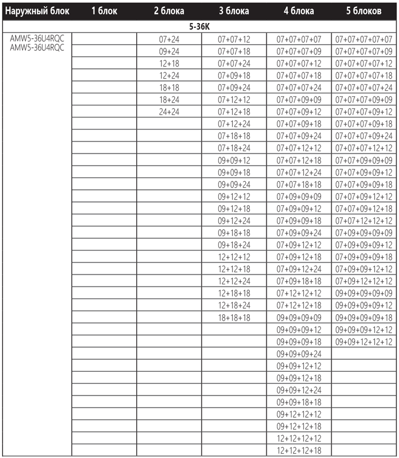 Рассчитан на подключение 5 внутренних блоков. Общая площадь охлаждения до 100 кв.м, комбинации внутренних блоков подбираются индивидуально. Внутренние блоки можно подобрать здесь.