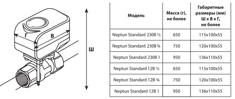 Шаровой кран с электроприводом серии Neptun Standard 12В 1"
