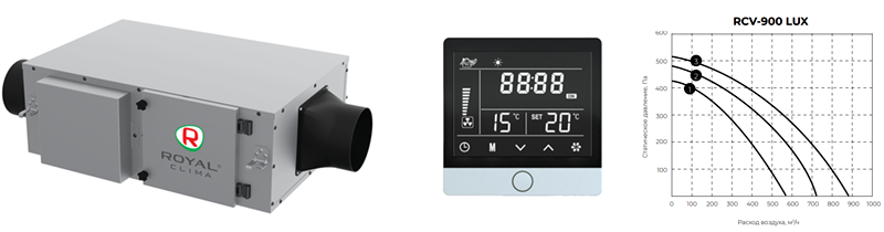 Приточная вентиляционная установка Royal Clima RCV-900 LUX с нагревателем EH-9000 серия VENTO
